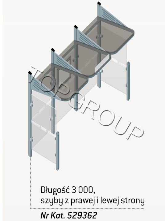 - podpórka do siedzenia (nie należy instalować ławki lub podpórki do siedzenia przy podświetlonym kasetonie lub przy gablocie 2000, aby nie blokować możliwości ich otwierania)